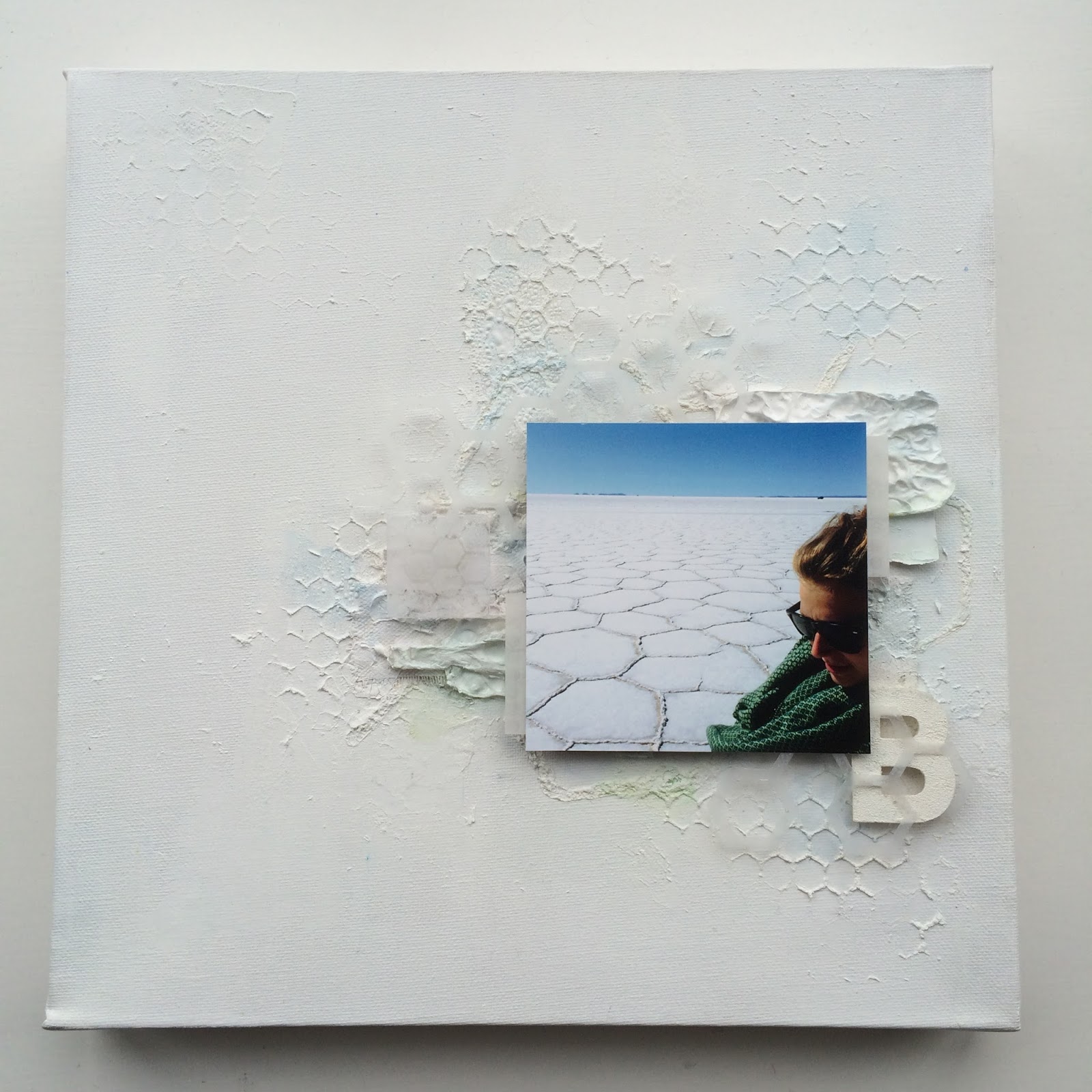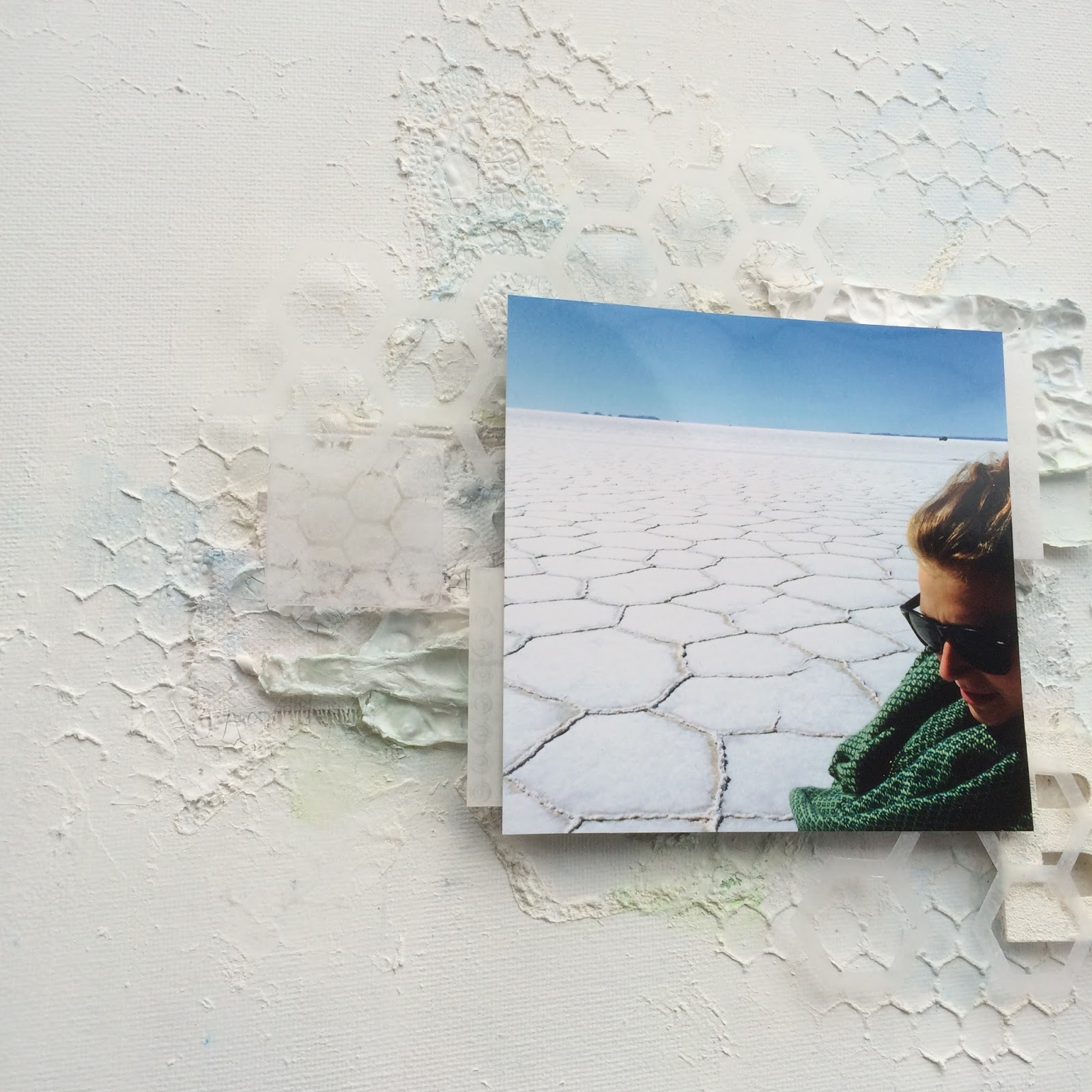 ReplyDeleteOh my, your canvas is stunning Ruth!! I love how you picked up the hexagons and also the touch of green to mirror your daughter's clothing. The quite space works so well with the picture of the salt flats - what an amazing place! Anne xx