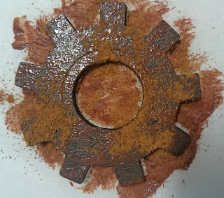 This technique will work on any surface you want to rust. For this particular tutorial I am using a wooden cog from my stash.