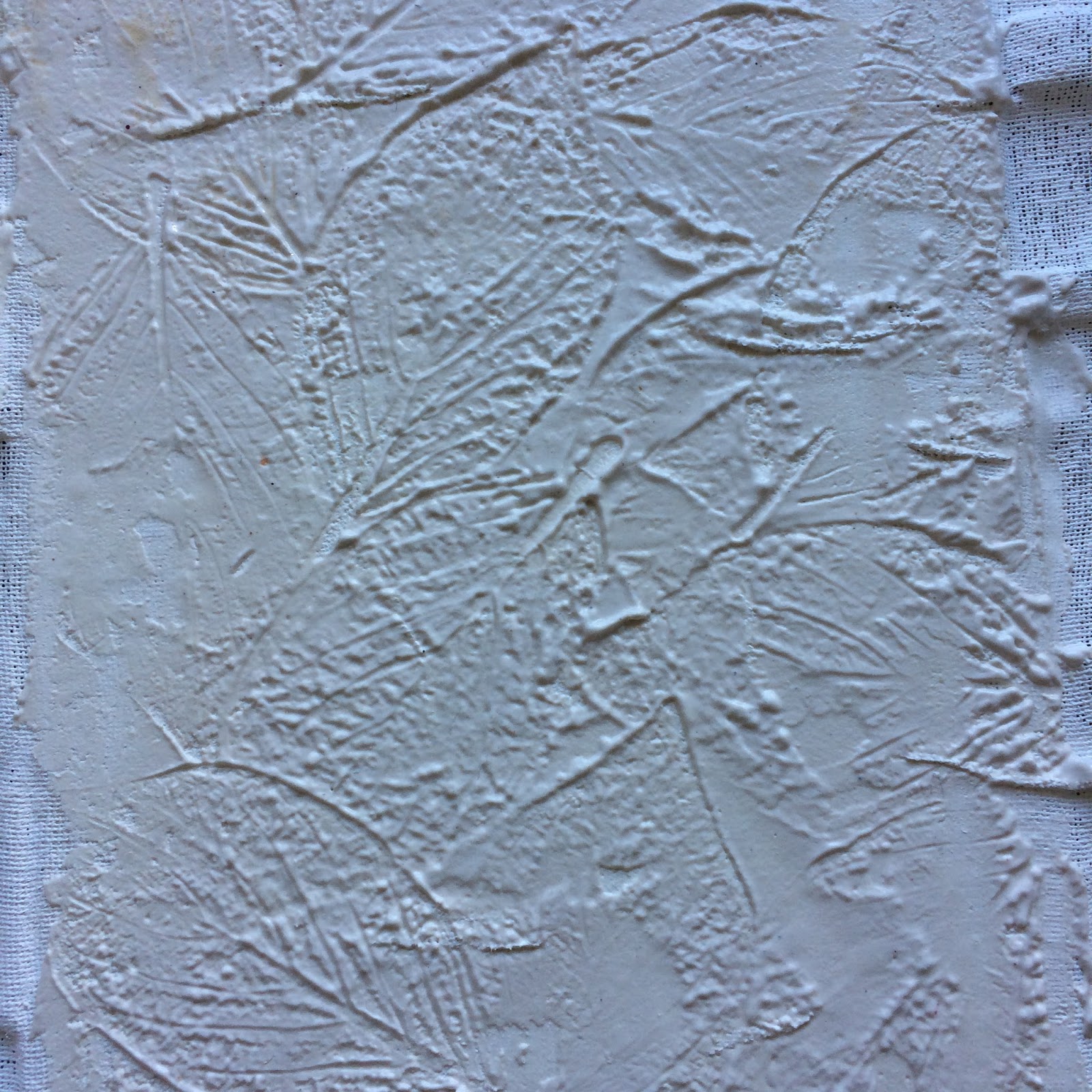 Once dry I spread a thin layer of grunge paste over and stamped into it with a Lin Brown leaf stamp. Spray the rubber with a mist of water before stamping. I just made a random pattern.