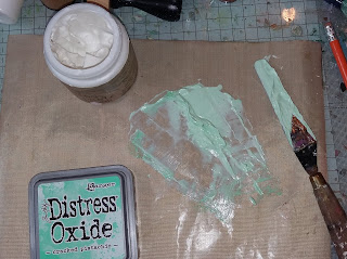 Next I mixed a dab of cracked pistachio distress oxide with wendy vecchi crackle paste and mixed thoroughly.