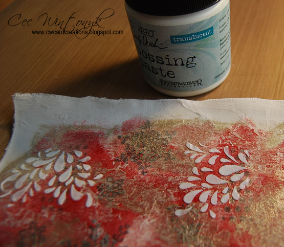 and applied gesso, Distress stain and texture paste and embossed using brass