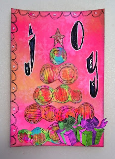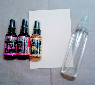 Once the Staz On ink was dry, I coloured my image with a variety of Alcohol Inks. The stamp is from a Lynne Perella set.I really love the stained glass effect. My next move was to add a sheet of 'gold' metal leaf to the painted image. To do this, I sprayed the side I'd printed and painted, with repositional adhesive and