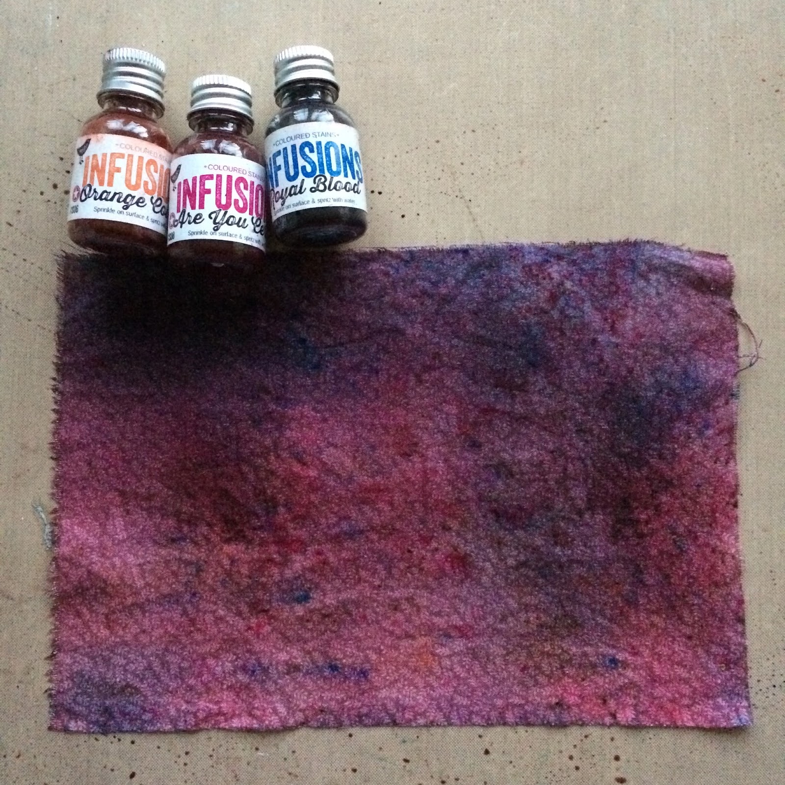 I was able to move the colors along and blend with water until I heat set my panel, which surprised me! When I had used Infusions onto a canvas panel, they remained water activated throughout, Distress Oxide (DOX henceforth) became more permanent (not completely, but more). Water flecks did not completely remove the ink as it had with my Infusions experiments. This made me happy!